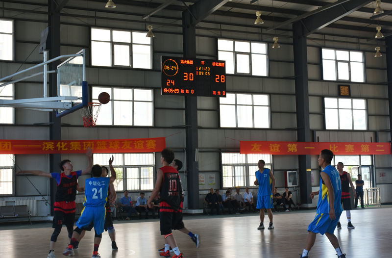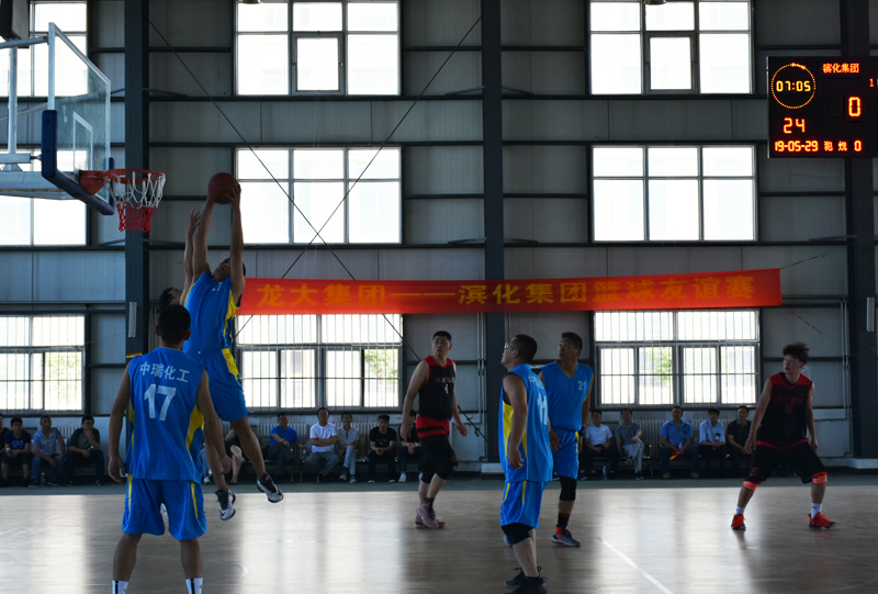 5月29日,应体育博彩 集团之邀,滨化集团副总经理许峰九、工会主席金建全率公司篮球队一行赴莱,双方开展了热烈而友好的篮球友谊赛。赛前,体育博彩 集团总经理张德润致辞,表示“体育博彩 集团与滨化集团是多年的合作伙伴和真挚的朋友,希望通过此次篮球友谊赛,能够加深双方的了解,在运动对抗中,增进彼此的感情,祝愿体育博彩 集团与滨化集团友谊地久天长。”