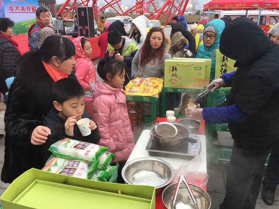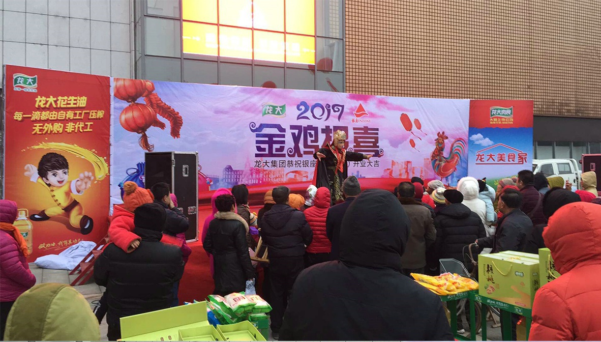 1月7日—9日,银座莱阳店门前广场喜气洋洋。体育博彩 集团组织旗下植物油、肉食品两大内贸产品进行为期3天的路演,为银座莱阳店开业助力。