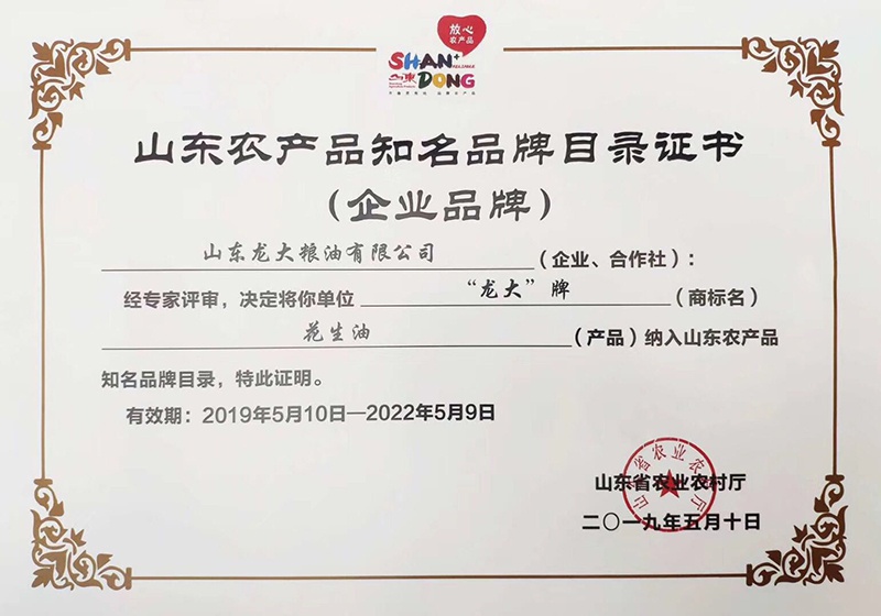 体育博彩 花生油获评山东省第四批知名企业产品品牌