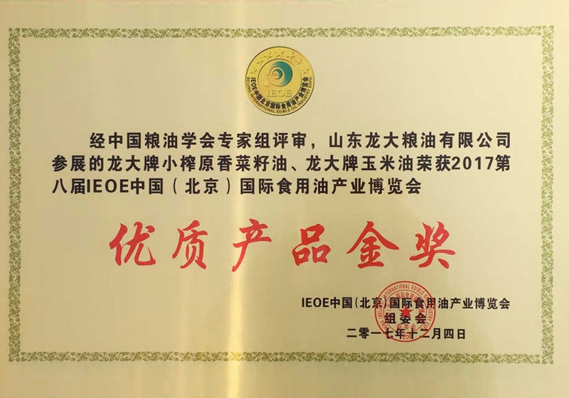 体育博彩 粮油喜获第八届IEOE中国国际食用油产业博览会金奖